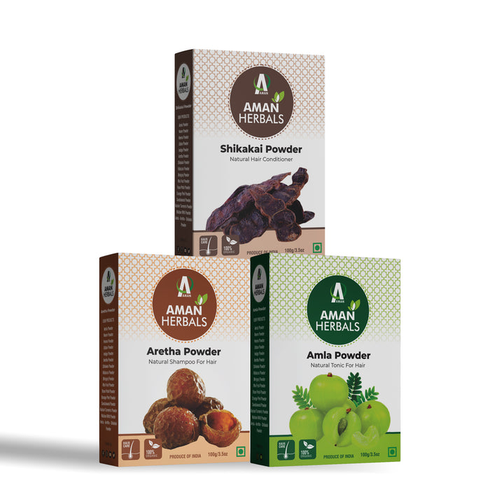 100% Pure and Natural Organic Amla, Reetha & Shikakai Powder